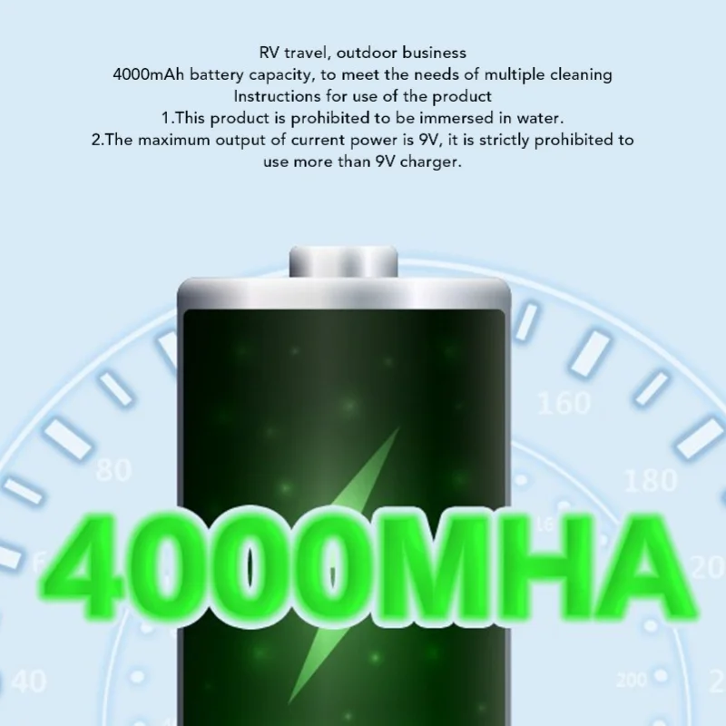 4.Cordless With Long Battery Life: Battery powered with a built in rechargeable battery, offering easy operating. Each charge allows for multiple washes, eliminating tangled cords, ideal for outdoor cleaning or spaces with limited outlets.