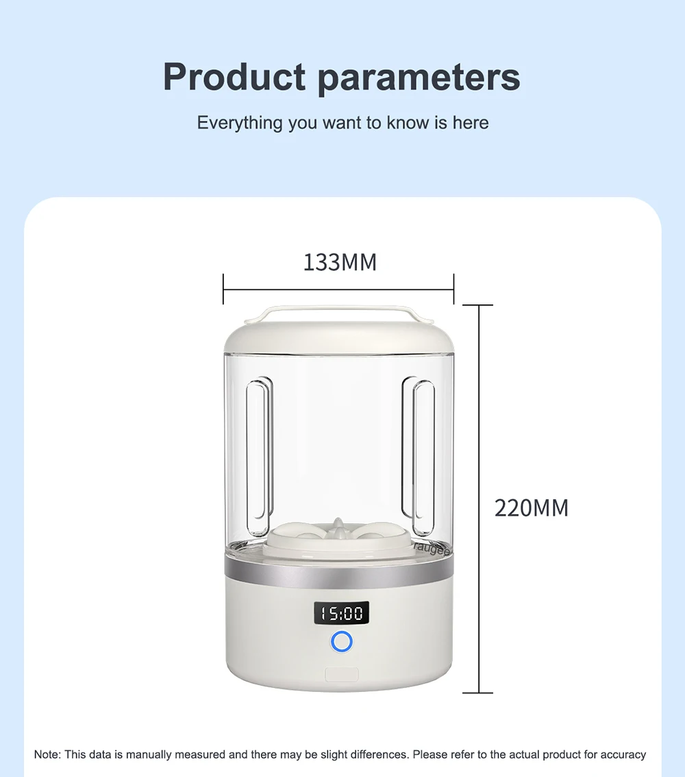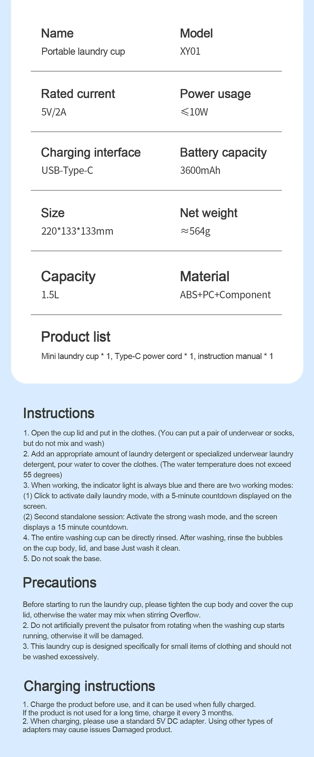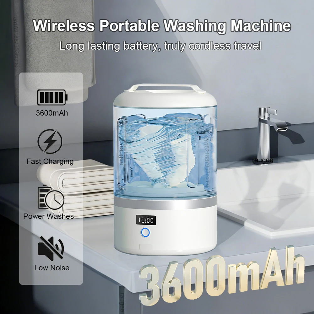 【Mini Underware Washer】The portable washing machine comes with a large 3600mAh battery. It comes with an LED digital touch screen that lets you see at a glance the remaining power and selected mode.