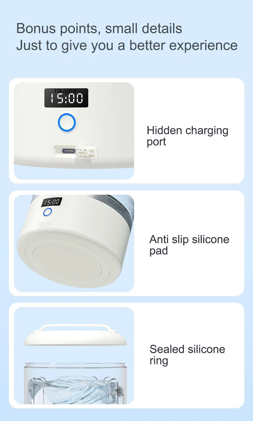 【Compact & Splashproof】The body is splash-proof and compact, making it ideal for traveling, business trips and camping. This raugee portable washing machine realizes the free use experience of doing laundry anywhere and anytime.(Note:Fill with water to no more than 2/3 of the container's height. Do not fill the container to the brim)
