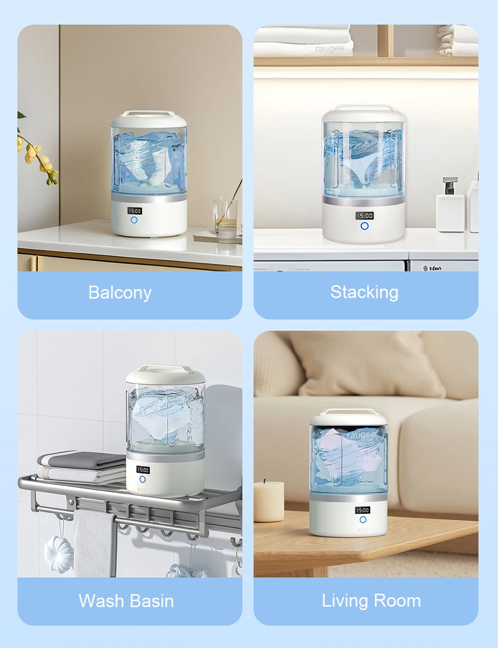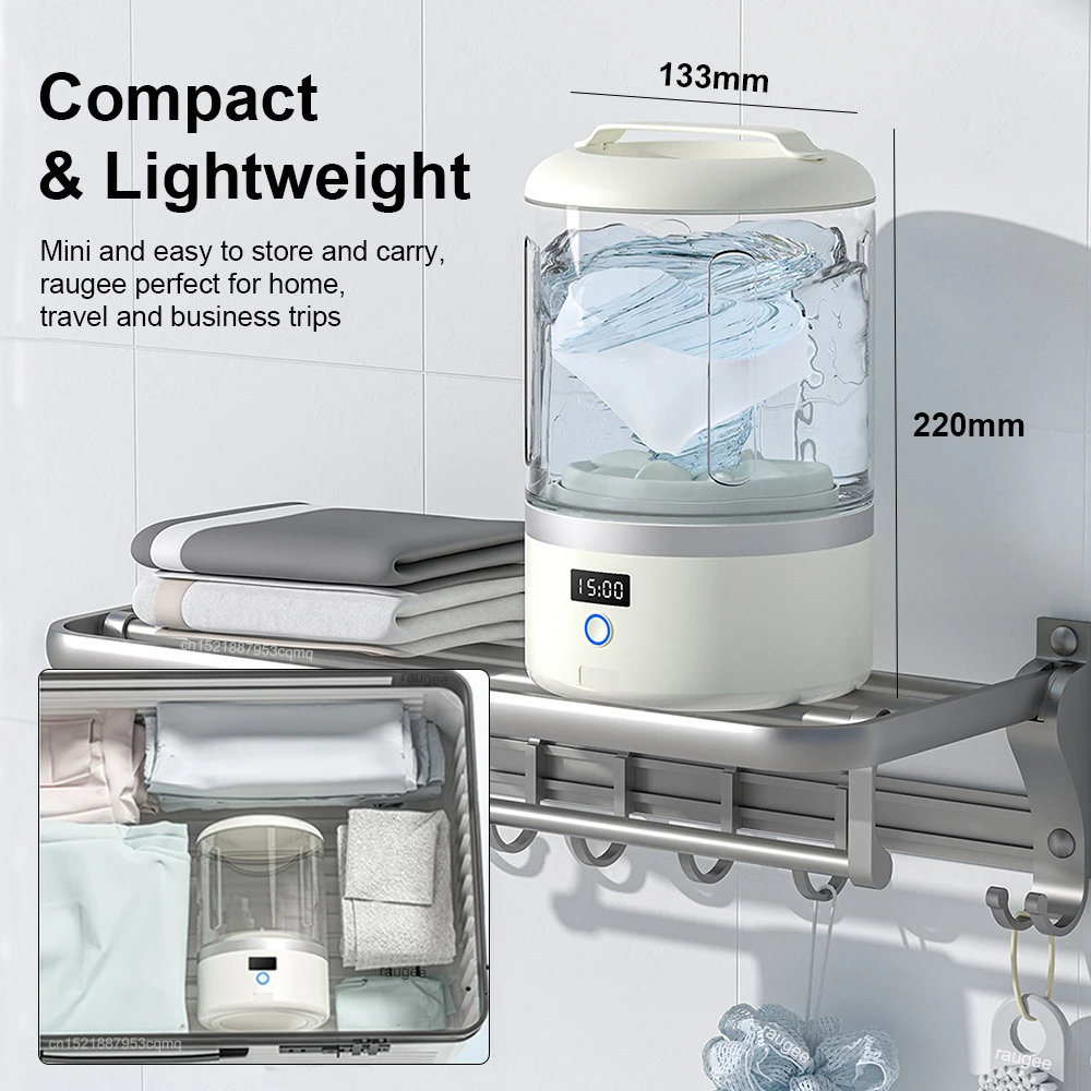 【Easy & Simple Operation】Effortlessly clean your clothes anywhere with user-friendly controls.Simply press the power button and select your desired washing mode to immediately start washing,raugee simplifying your laundry routine.