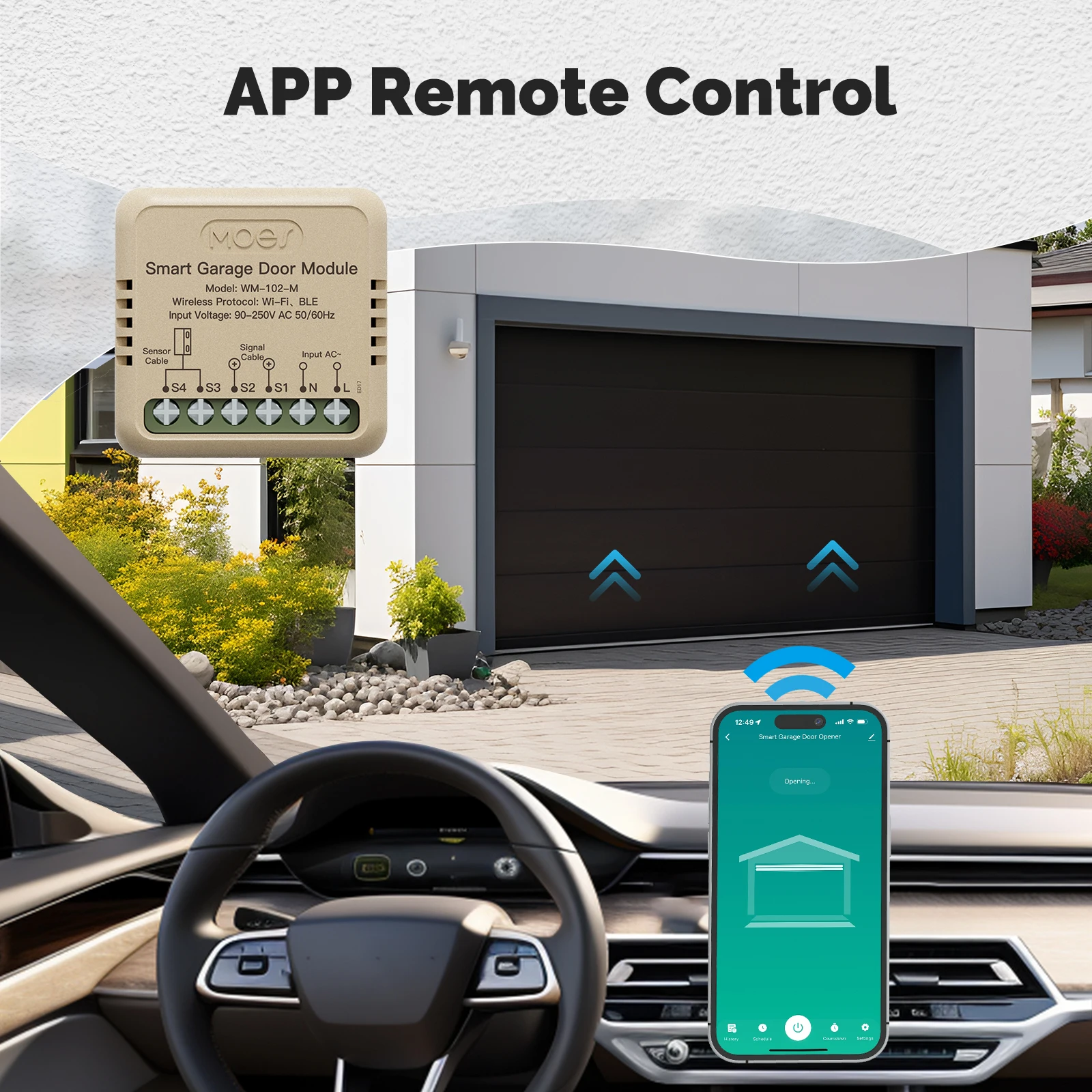 When you drive home, you don’t need to get out of the car. Simply use the mobile app to remotely open the garage door, making life more convenient.