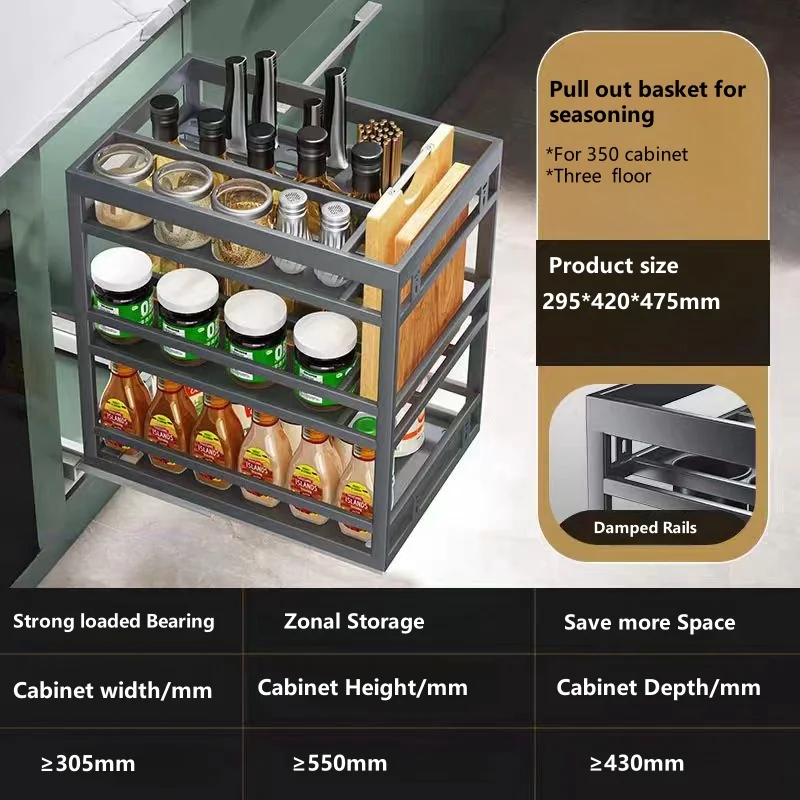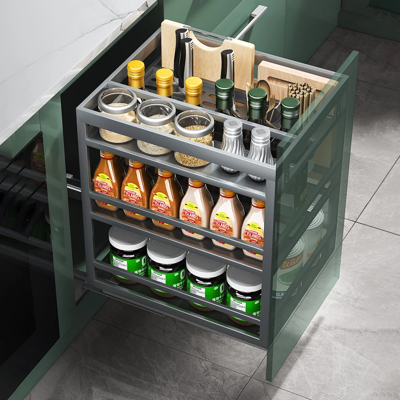 New Arrival Factory Modern Luxury Basket Drawers Kitchen seasoning Storage Hardware Pull Out Basket In Cabinet