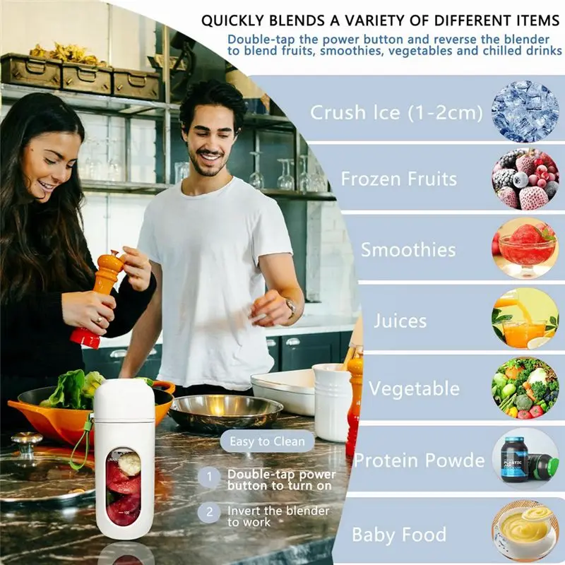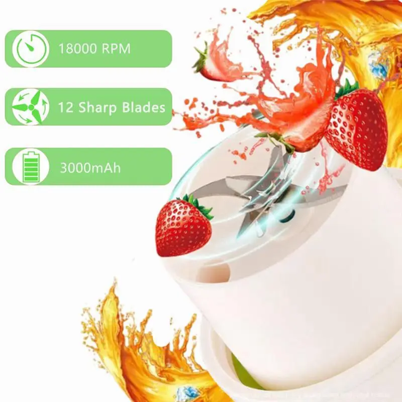 [Portable blender] 12 blades, double-click the power button and turn it upside down to start blending frozen ingredients. Easily blend fruits and vegetables and crush ice cubes. Portable detachable handle design, easy to carry, can be carried to the office, barbecue, gym, classroom, car or bag. Portable juicer cup. Basically, any food you see can be smashed.