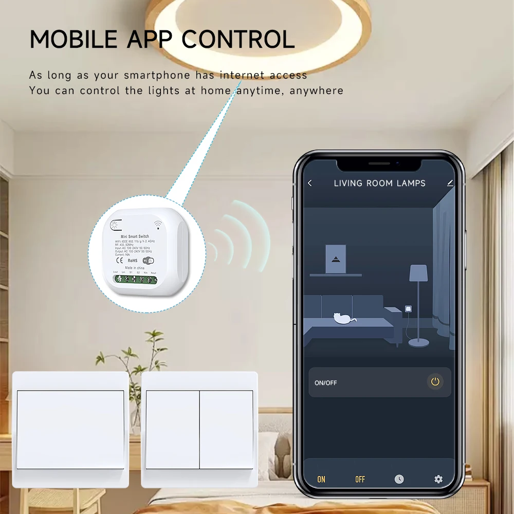 3. Wifi(2.4G)+RF433 signal communication, remote control does not require network