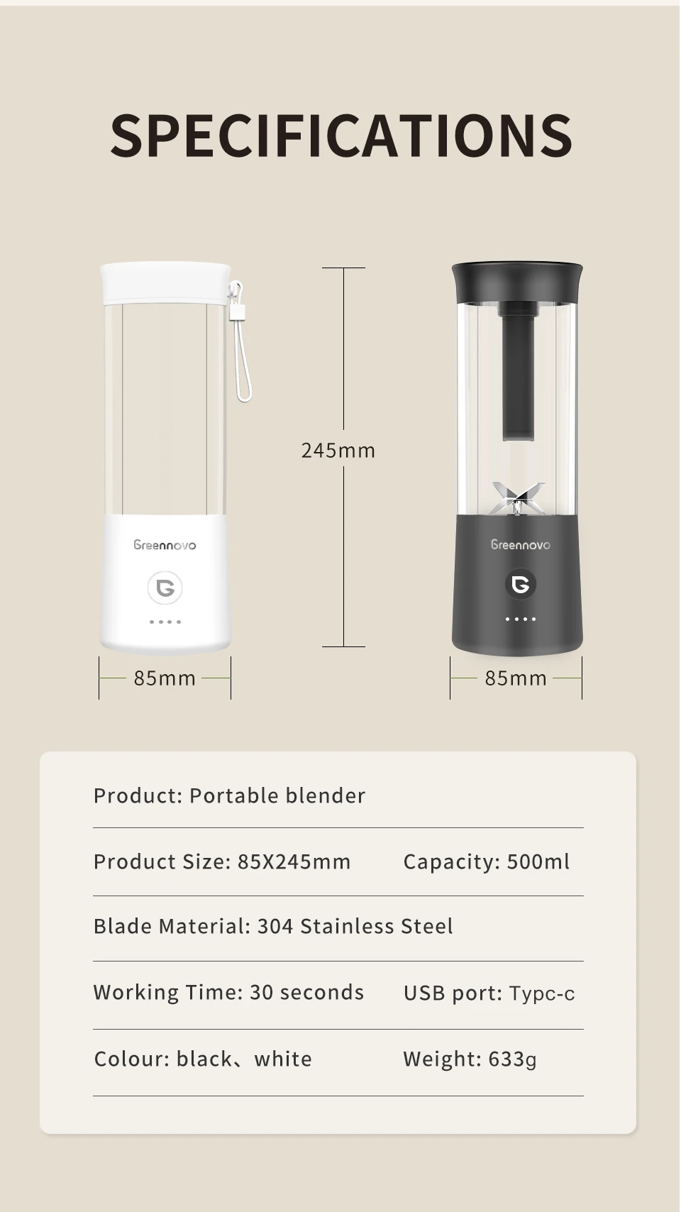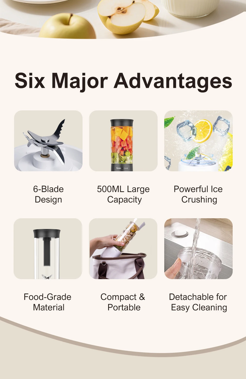 1. 500ML Large Capacity – Blend your favorite fruits, veggies, and supplements in one go.