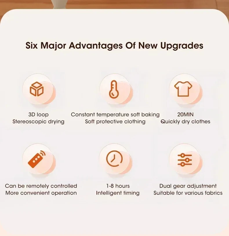 Main functions: Warm drying, odor removal, mite removal, and quick drying of clothes