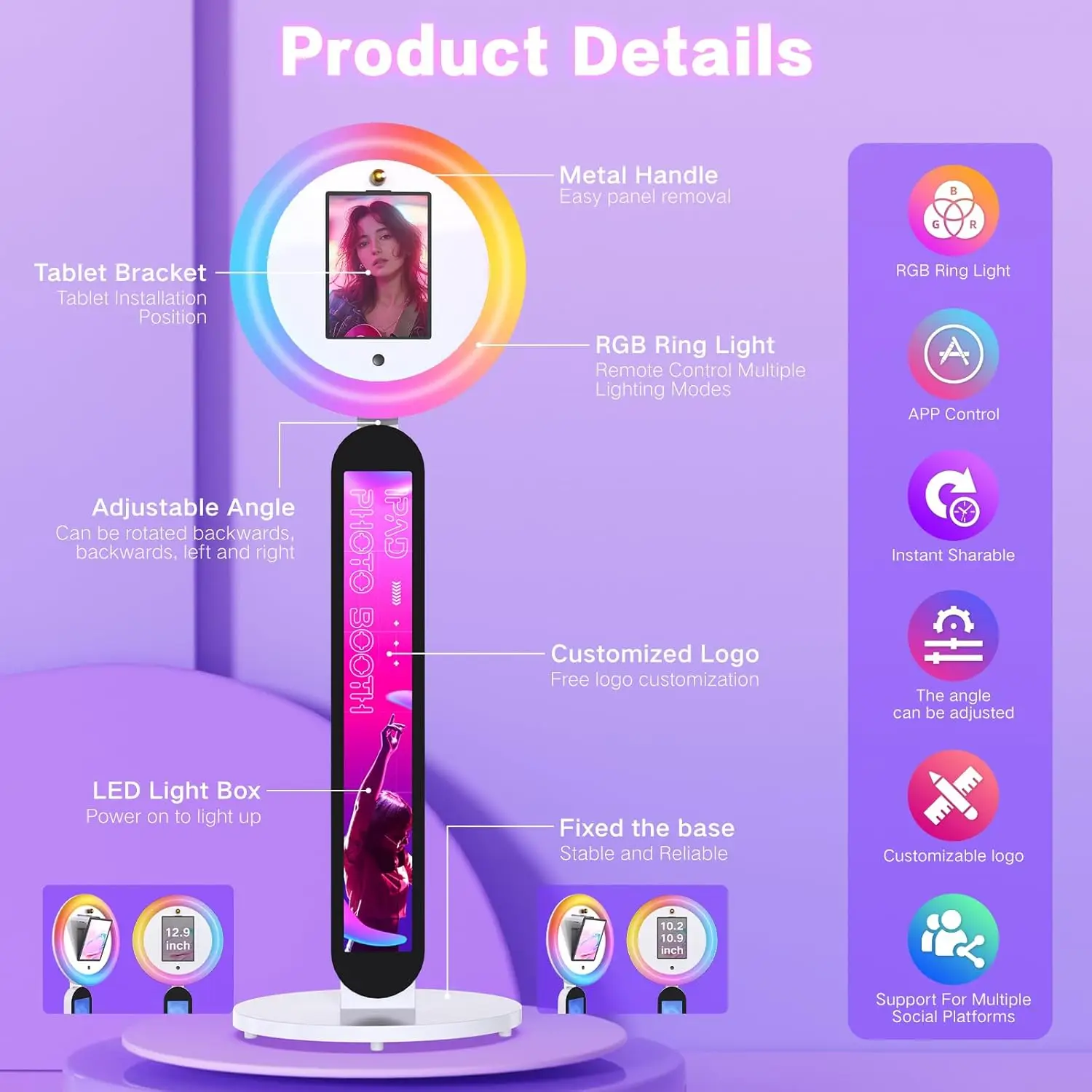 Selfie Photo Booth Machine With Adjustable Ring Light Shell Stand ipad Photo Booth for Party Applicable to any ipads Video Booth