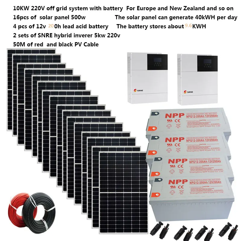 Solar Panel Kit Complete 10KW 220V/230V For European Buyer Generates about 40KWH per day for Home Villa Farm Roof Runs 4HP House hold appliance Battery Stores 12KWH