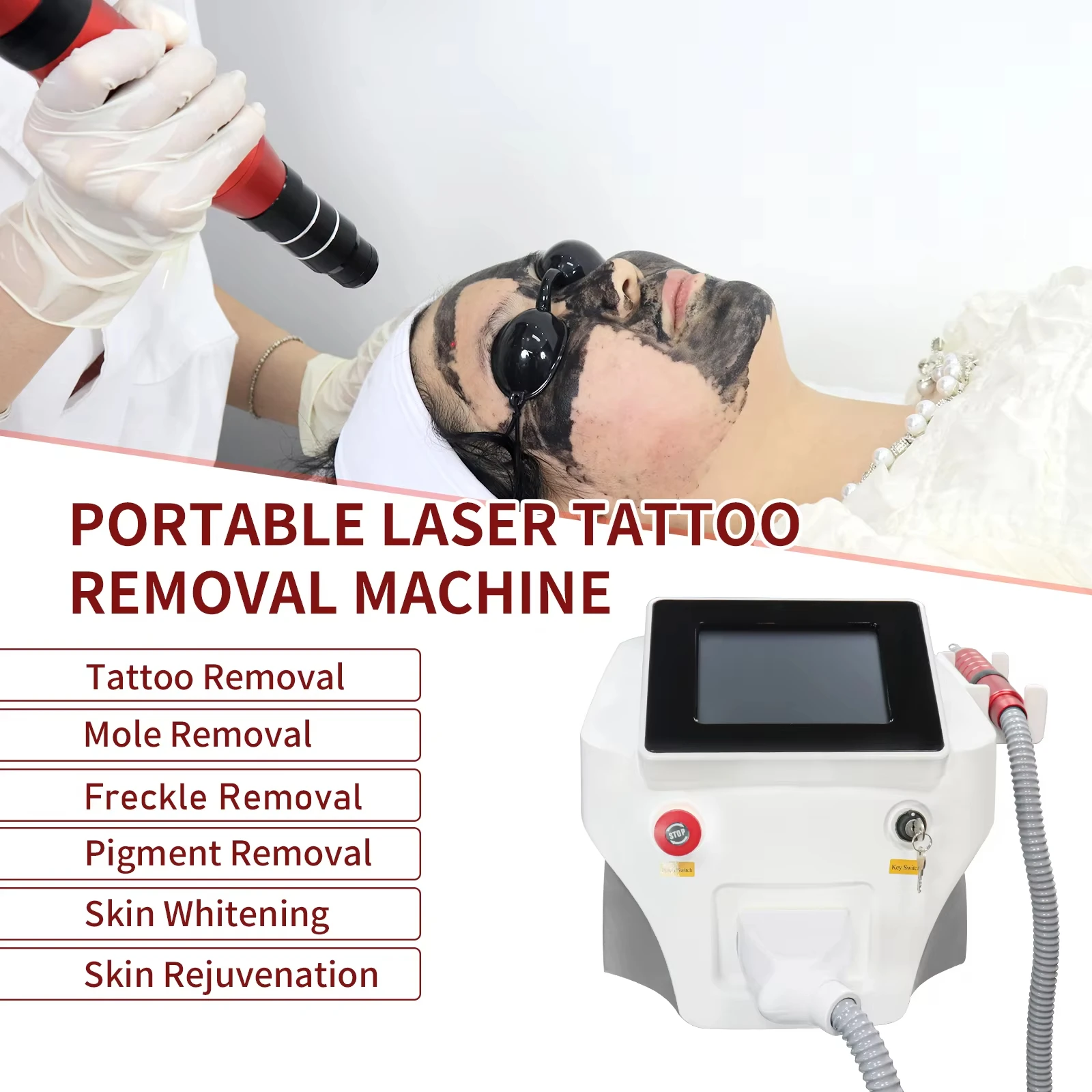 1.Easy to operation, 1064nm and 532nm,755nm can switch automoticly by press different button on the screen.