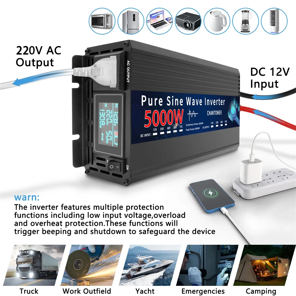 ✅ Pure sine wave inverter – Safe and stable for sensitive devices such as laptops, TVs, refrigerators, and tools.