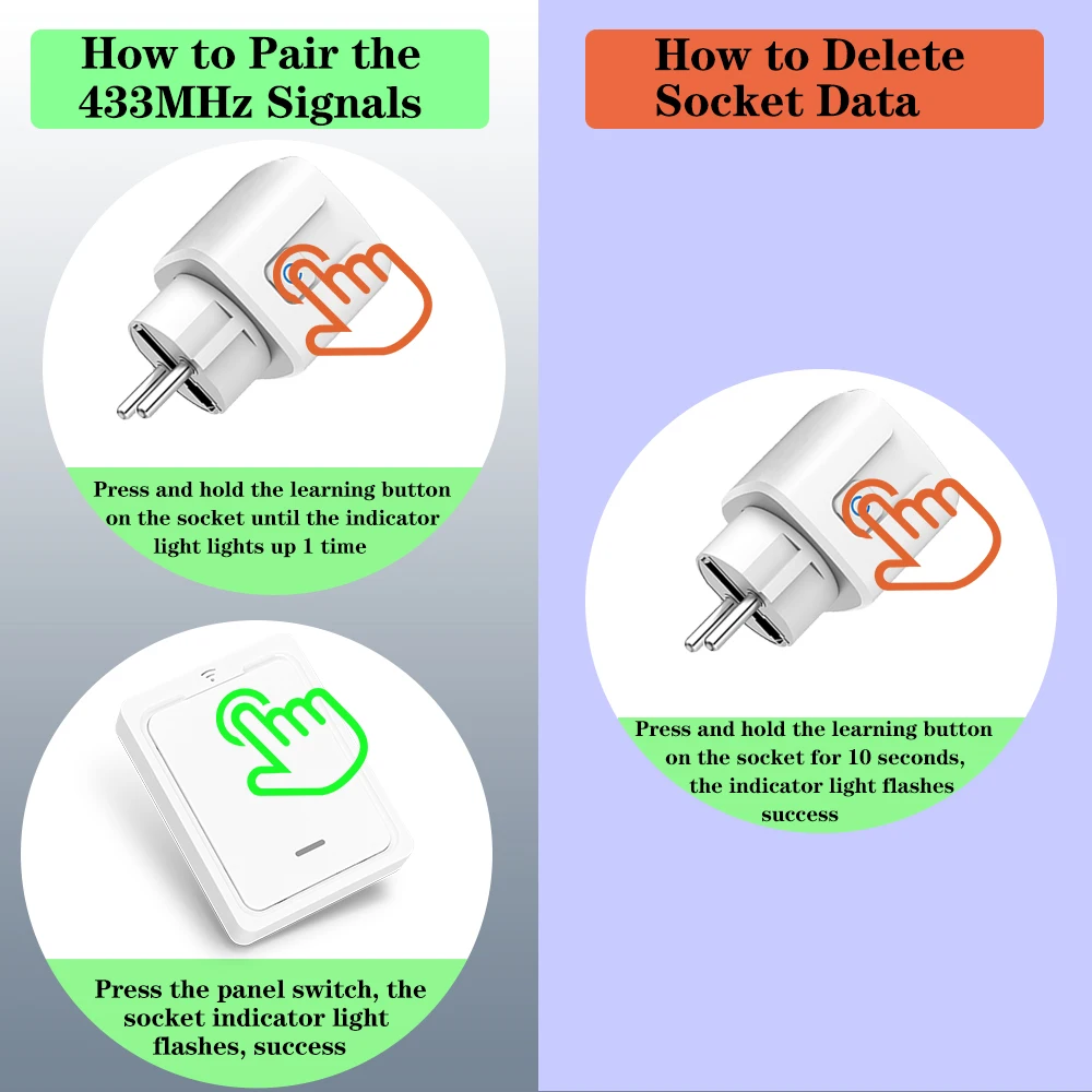 1. The socket uses RF433MHz signal and is stable to use.