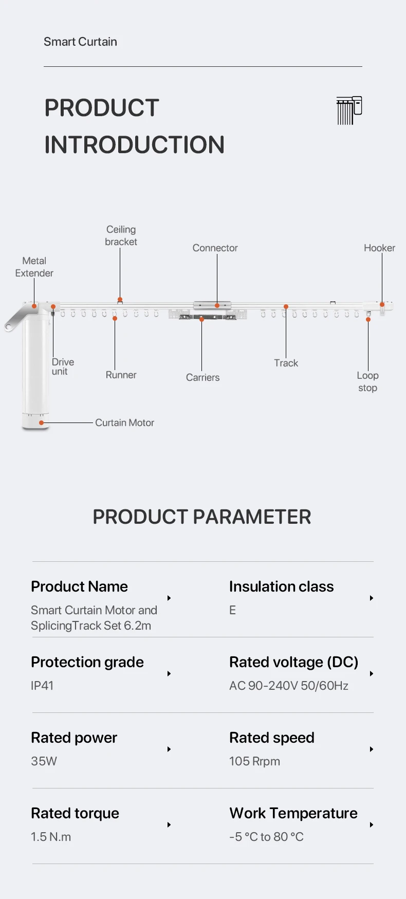- Product Name: Smart Curtain Motor and Curtain Track Set