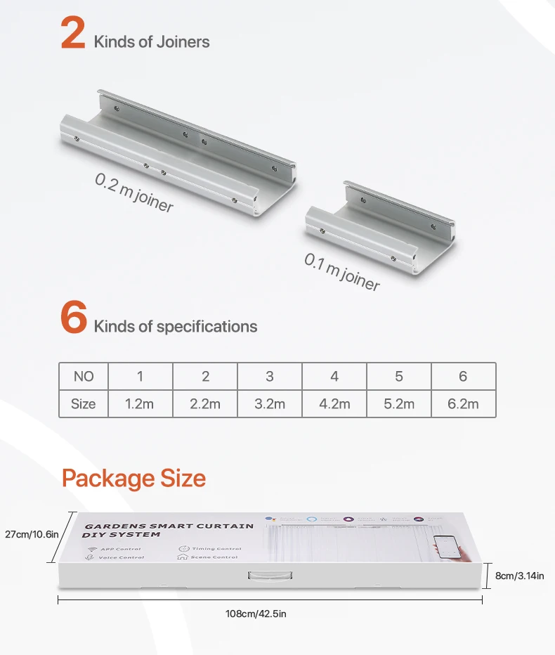 - Track Size Selection: 1.2m/2.2m/3.2m/4.2m/5.2m/6.2m