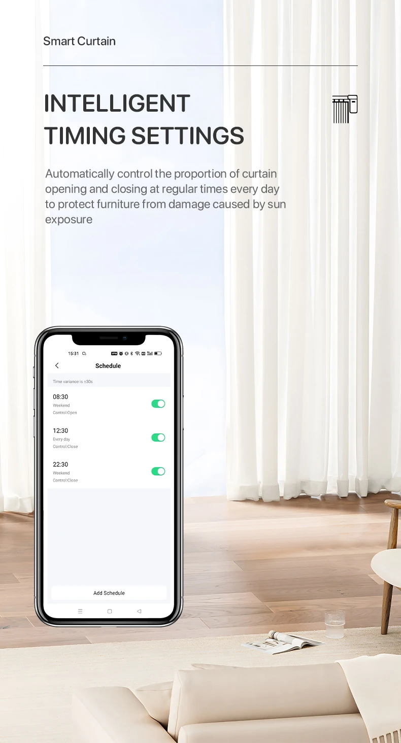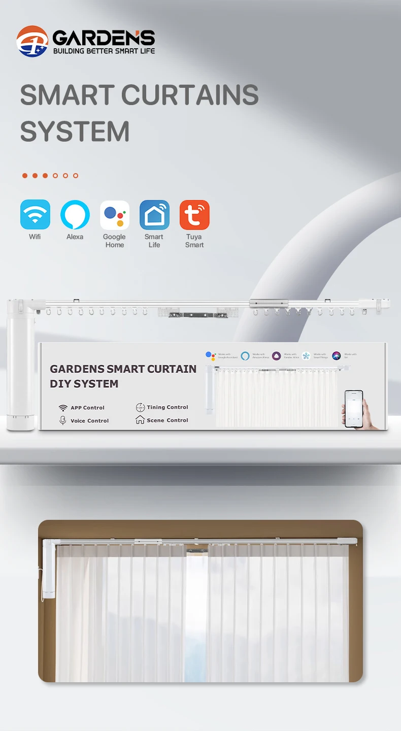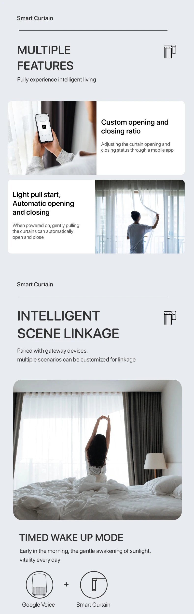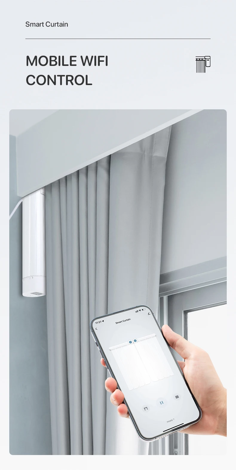*[Silent Operation]Super quiet Smart Wifi motorized curtain system,no worry about the noises.