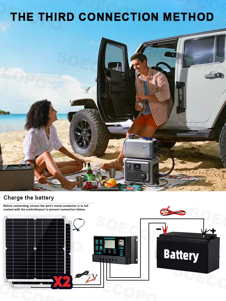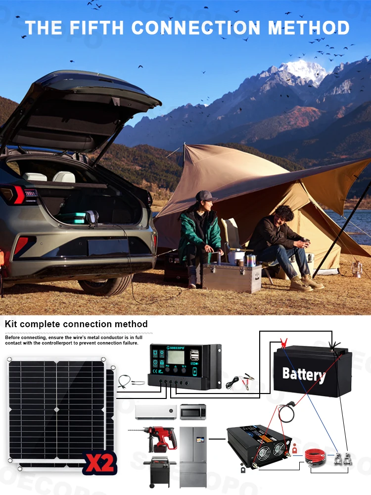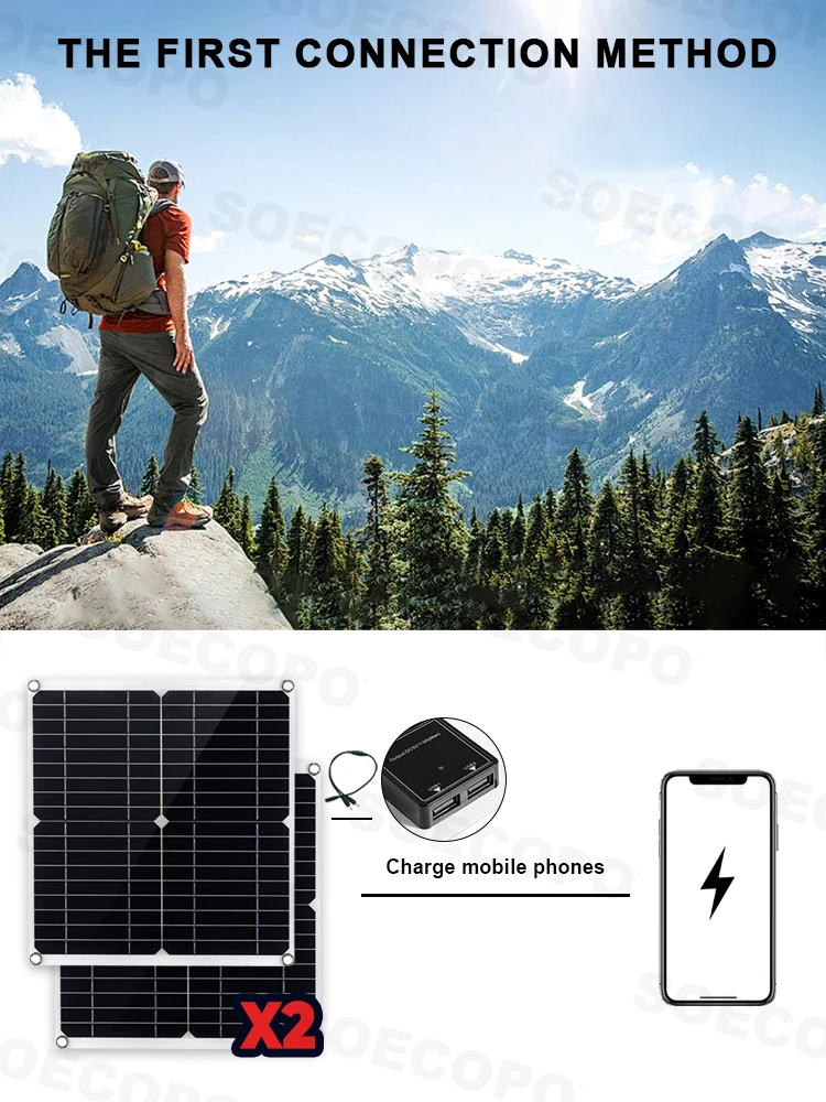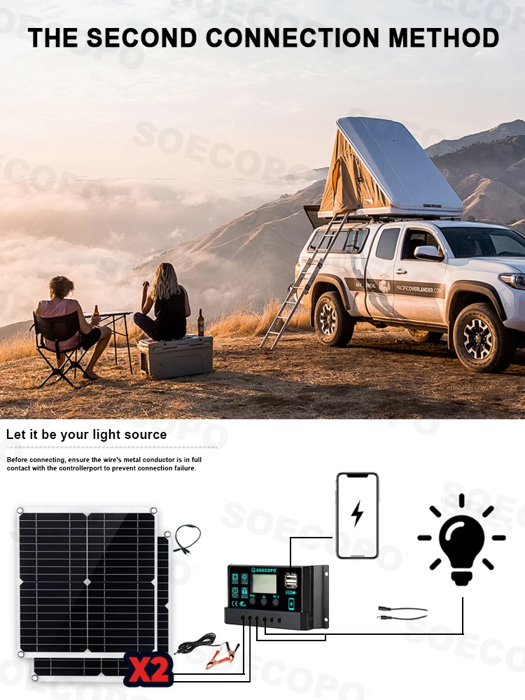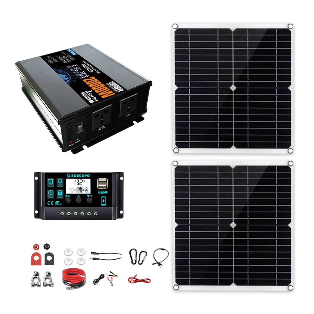 SOECOPO 20000W Peak Solar System Complete Kit 2*300W Panel 12V 24V To 220V 110V Inverter Socket 100A Controller for Home Camping