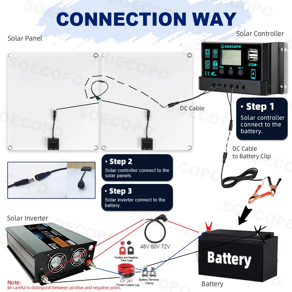 🔧 Installation guide: Please refer to the manual for detailed connection steps between the solar panel and the controller. Follow the diagram for more secure operation!
