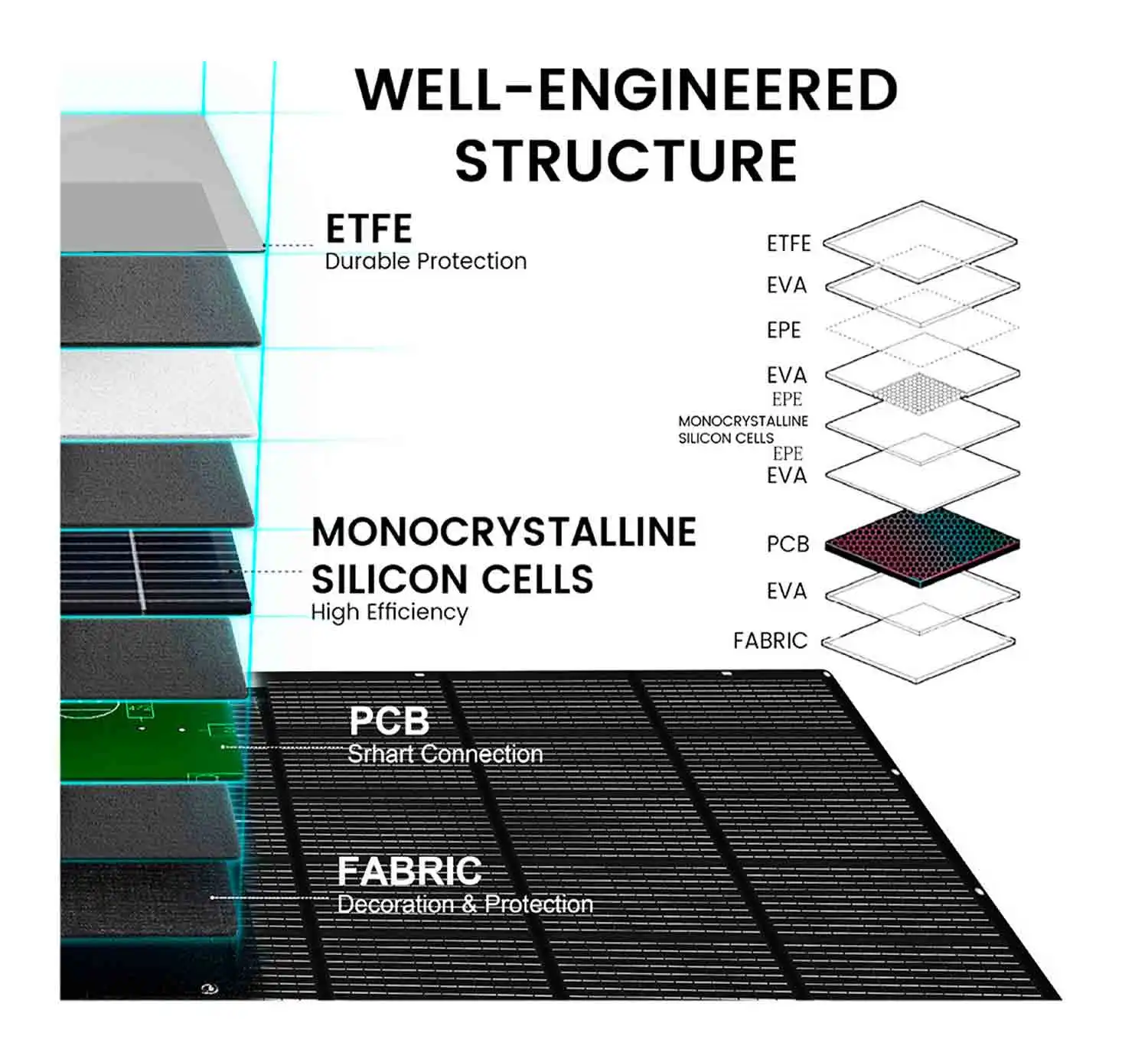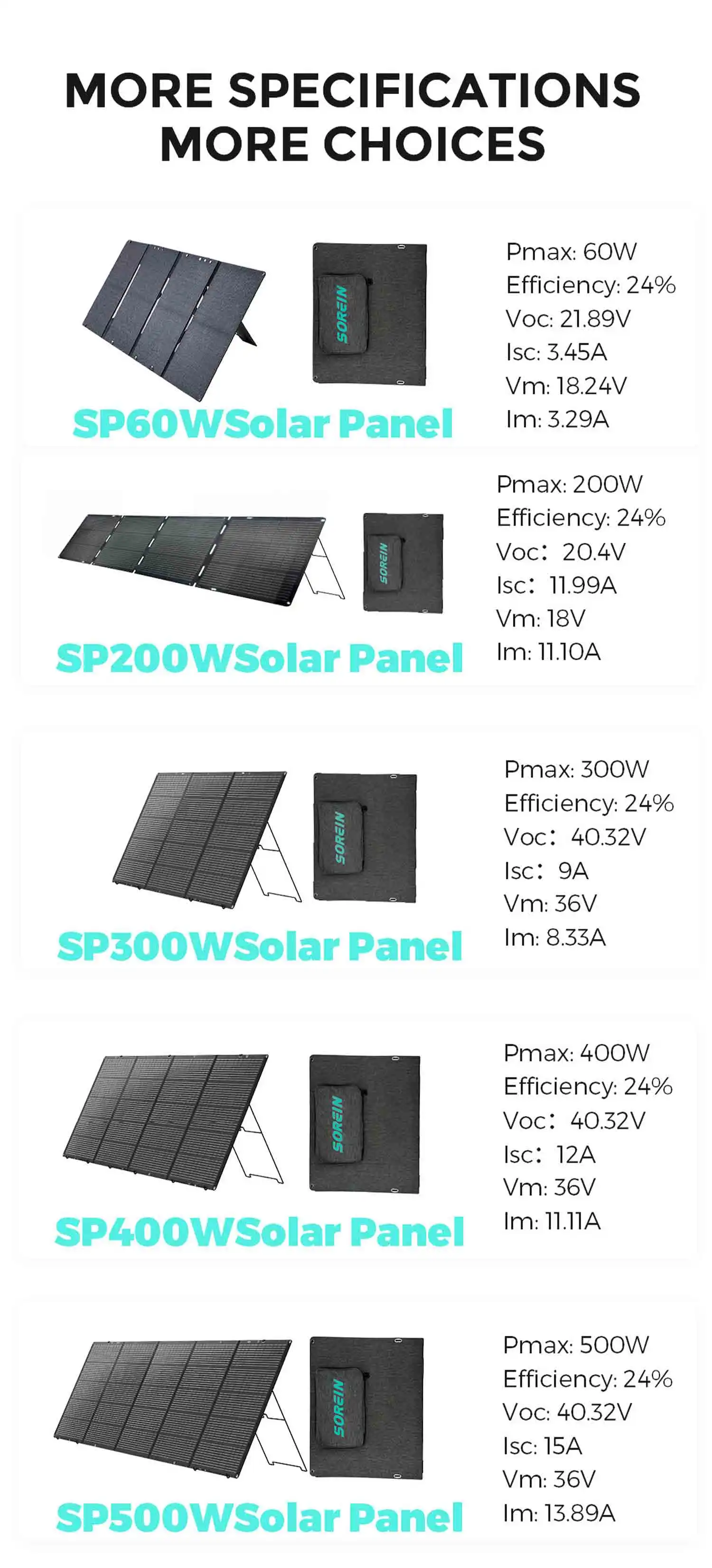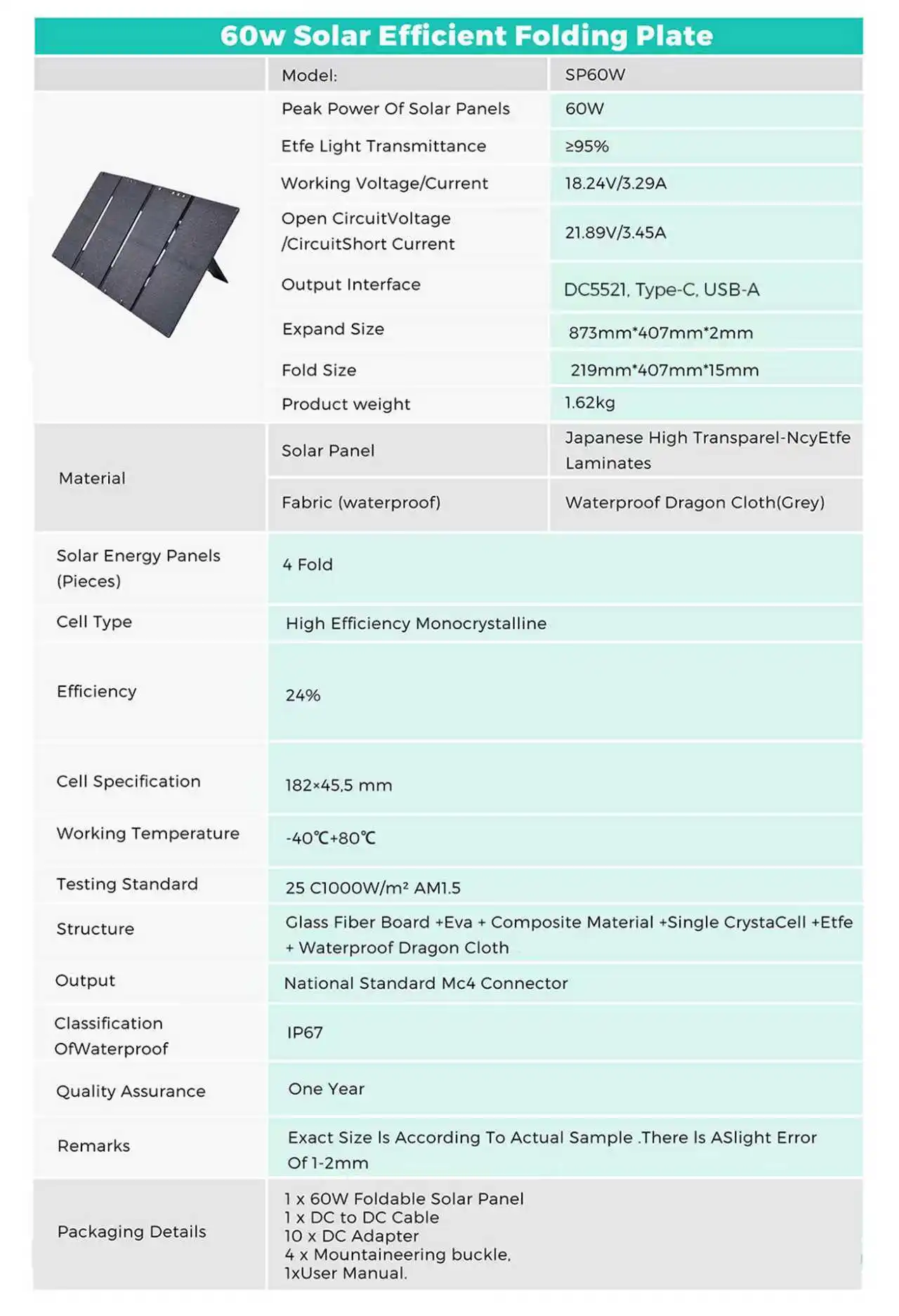 * Adopts high-efficiency polycrystalline silicon solar cells with high photoelectric conversion rate.