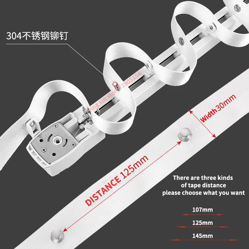 please note.The max loadbearing depens on the length of curtain ,for 4m Straight track/rail ,can load 75kg;8m Straight track/rail ,can load 45kg.