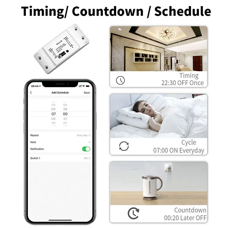 3. Timing Function:Take full control of your home or office lights thanks to schedule timer that will allow you to plan the exact time to turn lights and appliances on/off automatically