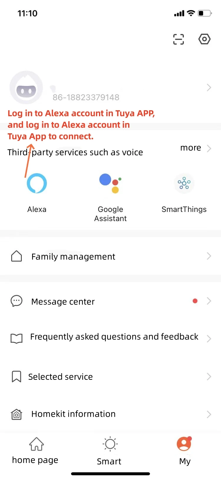 Note: Log in to Alexa account in Tuya APP, and log in to Alexa account in Tuya App to connect.