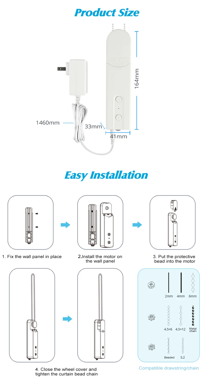 Wide Compatibility — Compatible with all kinds of curtains, blinds with rope loops or beaded chains (plastic or metal). Like Venice Vertical Wooden Roller Zebra Shangri-La.