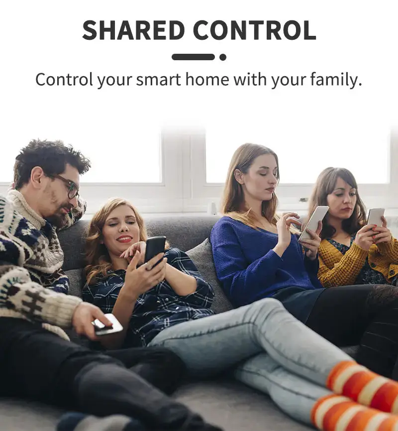 One-tap to share the smart plug with your family member by the app to eliminate extra setup processes.Main account has the exclusive permissions, one click to share the permissions with the whole family. Let the family enjoy the fun of smart life!