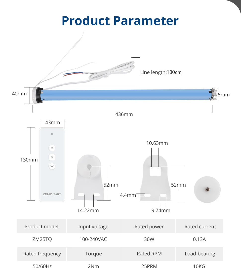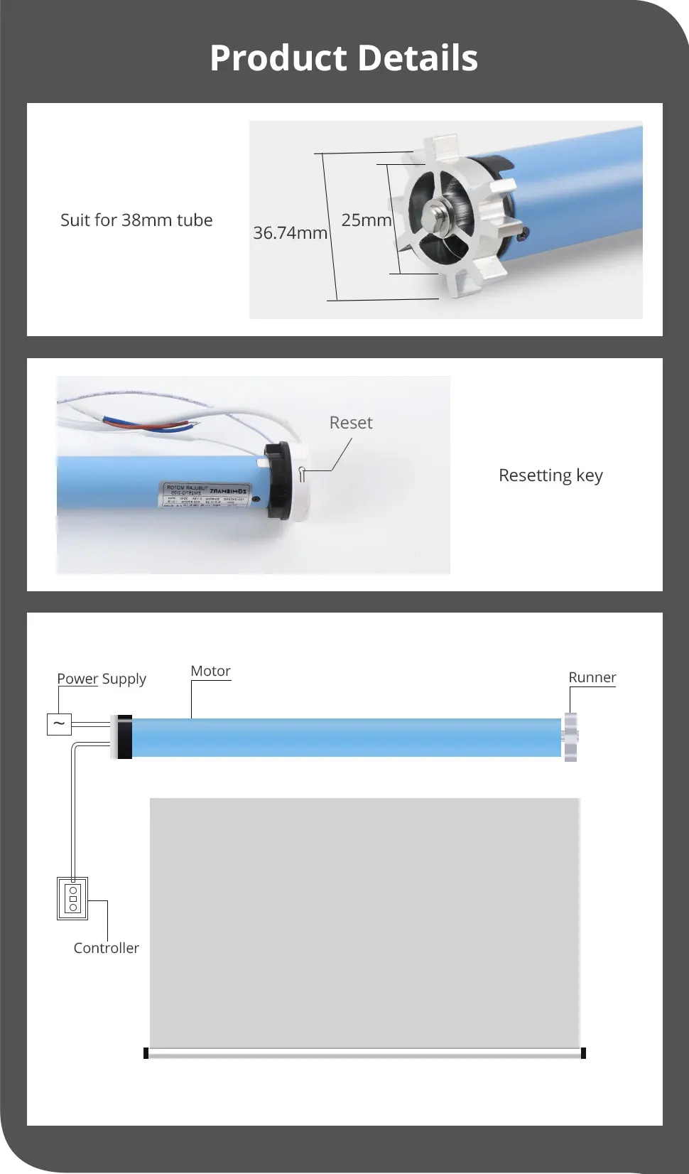 – This wifi roller shade blinds motor is for 38mm tube.