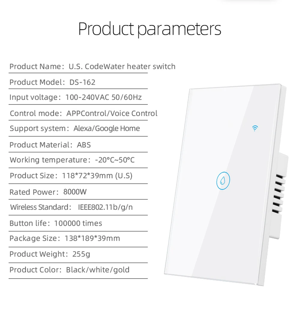 - Features: Water heater Switches