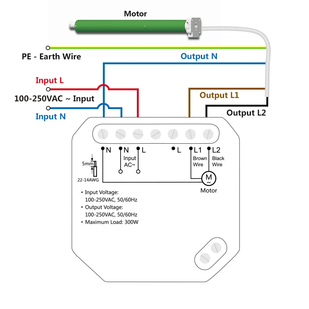 – Please check your motor is with 4 wires (Blue Wire, Brown wire, Black Wire, Green/Yellow Wire) before you buy our curtain switch module. And please be noted that neutral wire is a must for the installation, or you can't use our device.